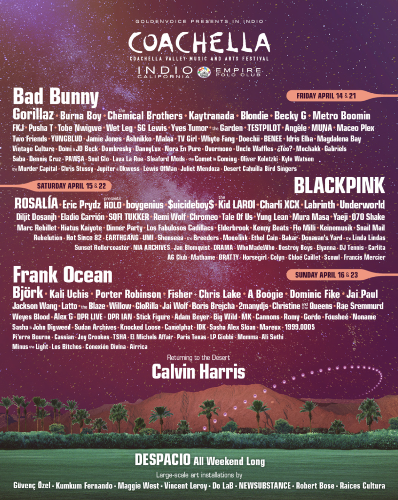 ¿Listo para Coachella 2023?Por NVM Noticias / 10 enero, 2023 Te mostramos el cartel que este año encabeza: Bad Bunny, La Rosalía y Calvin Harris: ca